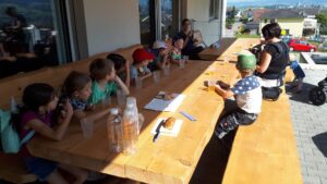 Am 24. September konnten 10 aufgeweckte Kinder nach informativer Erklärung von Krummenacher Sepp zusehen, wie aus Äpfeln frischer Most wird.